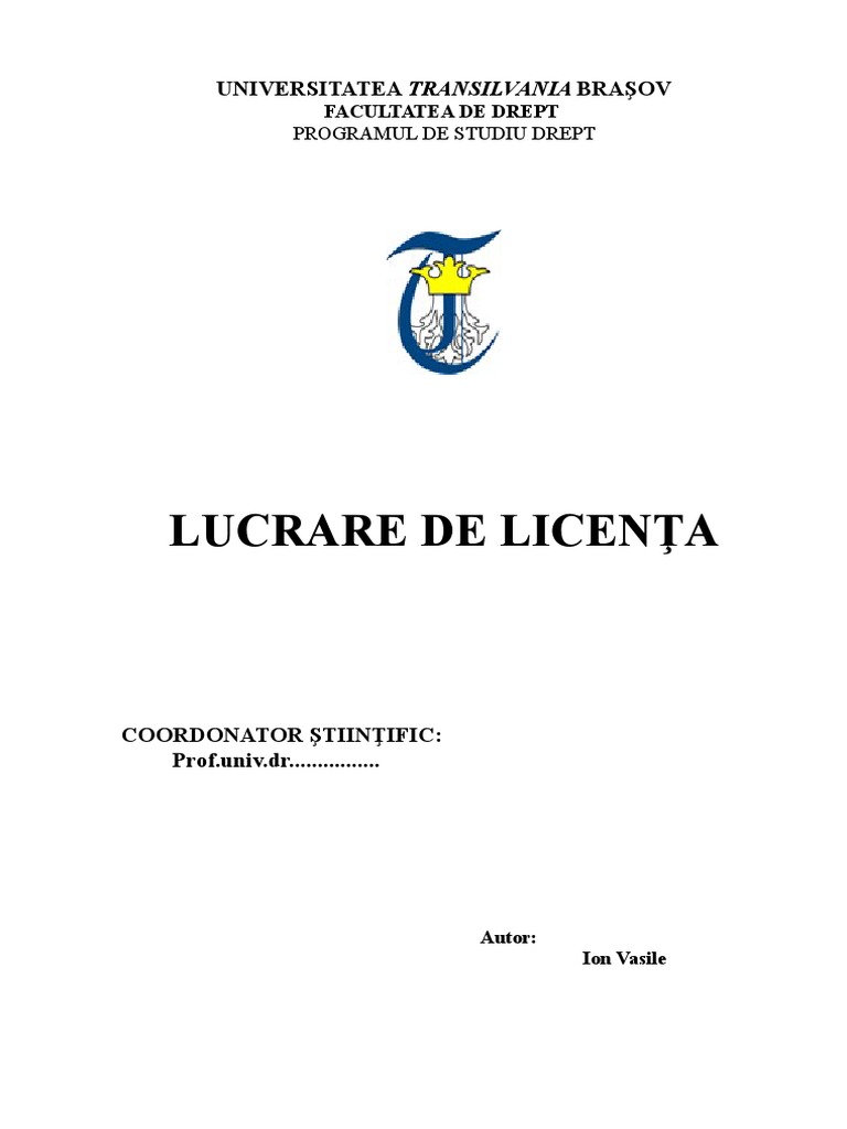 Introducere in aceasta scurta introducere la lucrarea de fata voi incerca sa fac o succinta prezentare a motivelor ce m au determinat sa sustin aceasta lucrare de diploma la examenul de licenta. Menţiunea lucrare de licenţă. Lucrare de licenta model drept. Denumirea instituţiei de învăţământ universitatea din bucureşti.