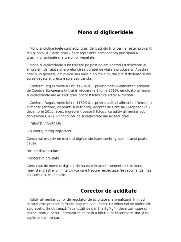 E250 nitrit de sodium. Mono si digliceridele sunt acizi grasi derivati din triglicerine ester provenit din glicerol si 3 acizi grasi identici sau diferiti care reprezinta componenta principala a tuturor grasimilor animale si a uleiurilor vegetale. E262 diacetat de sodium. Detaliile aditivului e471 mono si digliceride ale acizilor grasi.