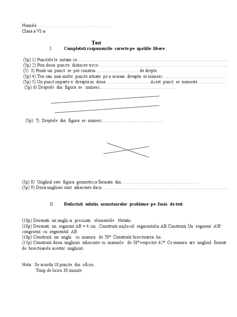 Test Unghiuri Clasa 6