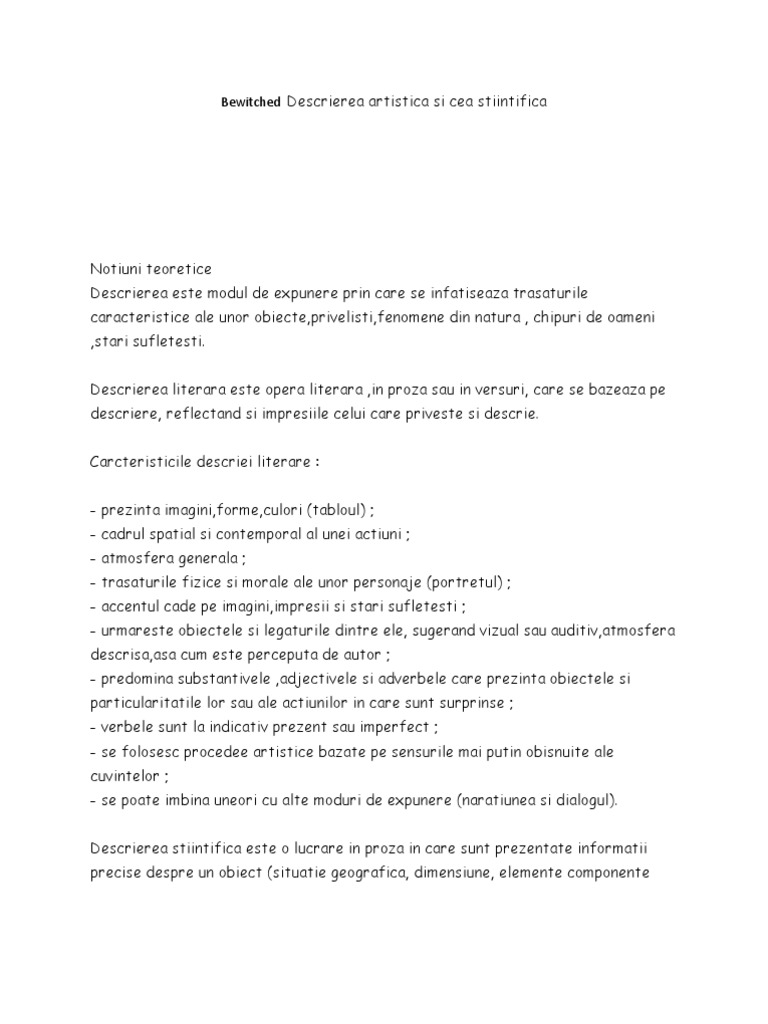 329 din 2006 iar tu ai putea să te afli în situaţia de a le încălca acum. Descrierea literară este descrierea în care se prezintă trăsăturile unui personaj ale unui colţ din natură sau a unui fenomen. Uimirea și bucuria cu care omul descoperă fru. Descrierea literară subiectivă este modul de expunere prin care se prezintă în detaliu caracteristicile unui obiect unei fiinţe unui fenomen.